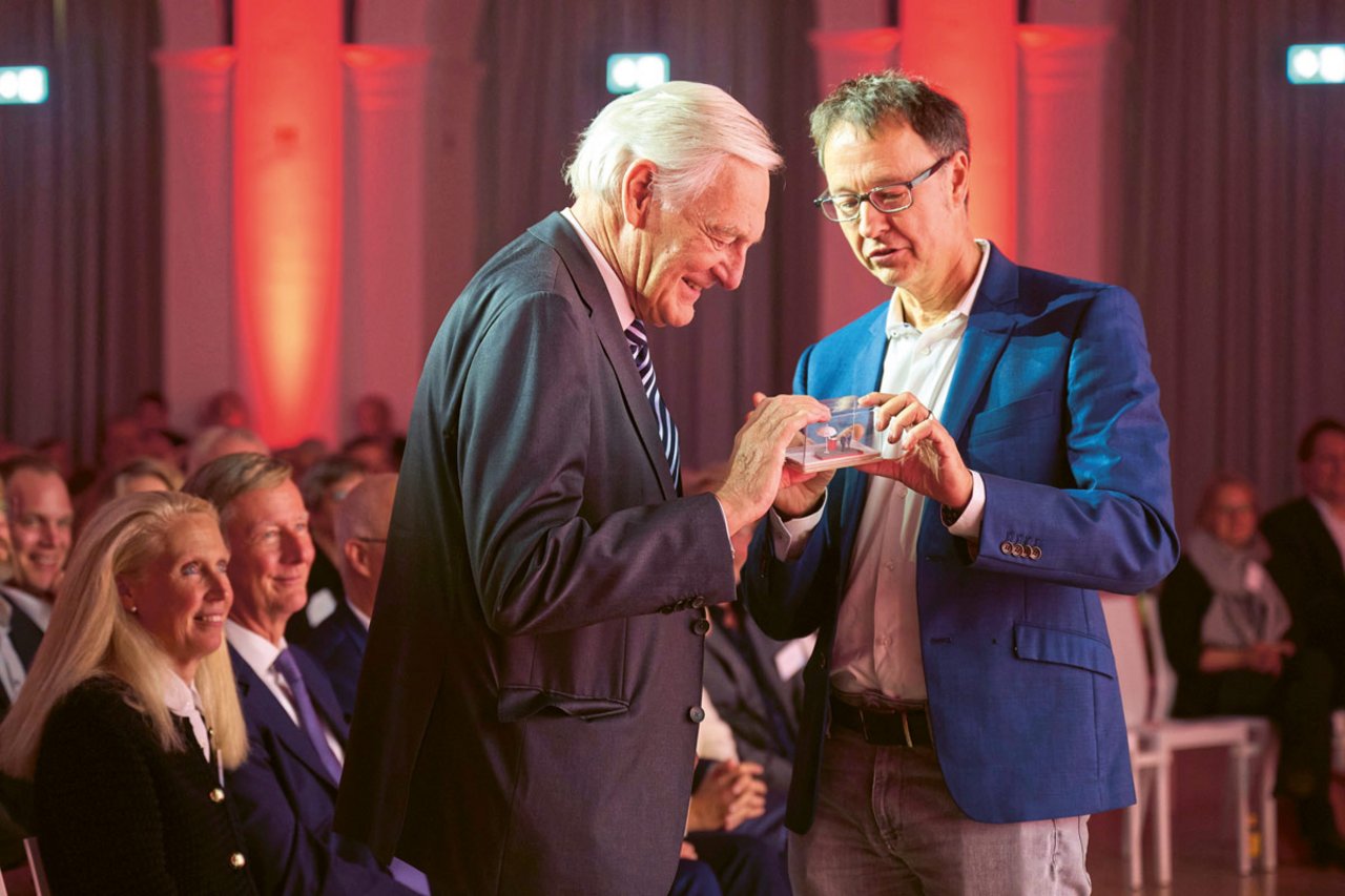 Ein Überraschungsbonbon noch zum Schluss: „Herr Dr. Dreyer braucht auch ein Denkmal“, schmunzelte Frederik Braun, Kuratoriumsmitglied und Gründer des Miniaturwunderlands, und überreichte Dr. Karl-Joachim Dreyer ein maßstabsgetreues Modell eines Standes der Haspa Hamburg Stiftung samt kleiner Dreyer-Figur. Die beiden winzigen Kunstwerke stehen im Miniaturwunderland auf dem Platz vor der Elbphilharmonie – als sichtbares Symbol dafür, dass Stiften Spaß macht und Hamburgs Herz für das Gemeinwohl schlägt.
