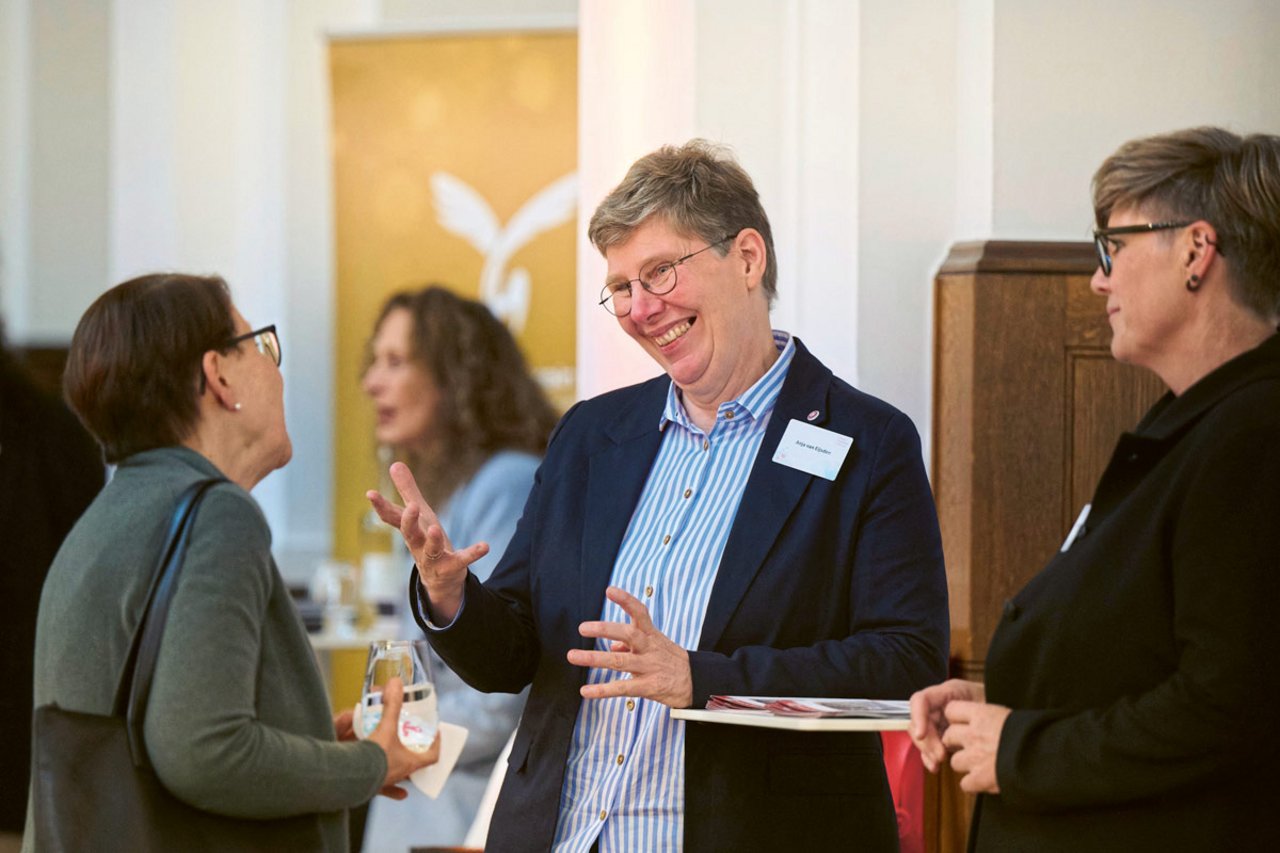 Höhepunkte gab es viele an diesem stimmungsvollen Abend. Dem Applaus nach zu urteilen waren die Verleihung des Karl-Joachim-Dreyer-Preises (siehe Bericht unten) und der dynamische Auftritt von Poetry-Slammer Lars Ruppel (s. rechts) zwei davon. Mit treffenden Worten und feinem Humor gelang es dem Improvisationskünstler, die Essenz des Stiftens auf den Punkt zu bringen. Er brachte den Saal zum Lachen und zum Nachdenken. Hatte er wirklich bis zur letzten Sekunde an seinem Gedicht gefeilt?, fragten sich viele angesichts der aktuellen Bezüge in seiner Darbietung zu vorangegangenen Gesprächen. Live-Kunst vom Feinsten sozusagen? Ein Auszug: „… Diese Welt braucht Ideen und Ideen einen Raum. Braucht Menschen mit Weitsicht, mit Tatkraft und Traum, die sich Verantwortung nehmen, um sie ein wenig zu tragen. Deren Herzen für immer in Stiftungen schlagen. Deren Namen und Werte ein Echo erzeugen. Die aufstehen und sich nicht diesem Ist-Zustand beugen …“